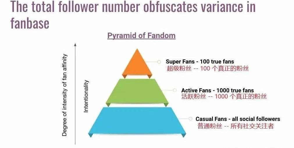 上圖:DavidPerell開設了自己的在線課程,名為“WriteofPassage”。截圖來源:https://writeofpassage.school/然而,正如我們所知,盈利能力和謀生能力是有區別的。在創作者經濟2.0階段,大多數創作者都在“湊合著賺點外快”。在創作者經濟中存在不平等問題是不可避免的,因為創作者利用他們的獨特性來建立忠實的粉絲基礎,并且創作者是不容易被取代的。然而,如果成功只集中在最高層,熱情經濟就不會大規模存在。在其撰寫的《創作經濟中的中產階級》(BuildingtheMiddleClassoftheCreatorEconomy)一文中,LiJin認為,就像在現實世界中一樣,我們需要一個健康的創作者中產階級;中產階級指的是“那些不是家喻戶曉的人,但有一個堅實的用戶基數,他們為創作者獲得體面的收入提供了基礎。”LiJin:當財富不集中在最富有的1%人群時,國家的可持續性和平臺的防御性會更好。在現實世界中,一個健康的中產階級對于促進社會信任、提供穩定的產品和服務需求以及推動創新至關重要。一種可能的方法是,如果創作者能夠找到“100個真正的粉絲”(100TrueFans);這是LiJin改編自KevinKelley最初的“1000個真正的粉絲”(1000TrueFans)理念:KevinKelley:要成為一個成功的創作者,你不需要數百萬美元。你不需要數百萬美元或數百萬消費者、數百萬客戶或數百萬粉絲。作為一名手藝人、攝影師、音樂家、設計師、作家、動畫師、應用程序開發者、企業家或發明家,你只需要數千個的真正粉絲就可以謀生。真正的粉絲被定義為會購買你創作的任何東西的粉絲。1000這個數字并不是絕對的。它的意義在于其大致的數量級——比一百萬少了三個數量級。(來源:1000TrueFans)Kevin表示,創作者不需要龐大的規模和(用戶)覆蓋面,只要他們能夠直接從購買他們作品的1000名真正粉絲身上賺錢就行了。1000這個數字是基于1000名真正的粉絲每人每年支付給創作者100美元的假設,這樣創作者就可以獲得10萬美元的年收入。數字并不重要,所以不要糾結于它。重點是,即使創作者擁有相對較小的利基用戶群,他們也可以維持生計。這使得形成中產階級創作者更容易實現。LiJin進一步闡述了這一觀點,并表示創作者可能需要更少的粉絲——100人,而不是1000人:LiJin:我認為創作者只需要積累100個真正的粉絲(而不是1000個),每人每年向他們支付1000美元。如今,創作者可以有效地從更少的粉絲身上賺到更多的錢。現在,100個真正粉絲和1000個真正粉絲并不是相互排斥的,每個粉絲每年支付1000美元的收益基準也不是一個精確的規定。相反,這種想法為熱情經濟的未來提供了一個框架:創作者可以細分他們的受眾,并提供不同價位的定制產品和服務。(來源:1000TrueFans?Try100)這一理論的基礎是,創作者可以向LiJin所說的“超級粉絲”(superfans)提供額外的價值。這方面的例子包括:優質內容,社區訪問,甚至是獨家訪問創作者的時間或專業知識。通過這樣做,創作者可以說服他們的超級粉絲花更多的錢。在LiJin的假設場景中,100個粉絲每人每年支付給創作者1000美元,而不是100美元。