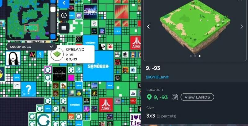 上圖:MetaCollectiveDAO發推文表示他們在TheSandbox購買的23個地塊靠近BYACAdamo說道:“它就像是TheSandbox中的紐約市。就像現在的(紐約市)下東區或蘇荷區。”如果元宇宙意味著包含所有虛擬存在的東西,從數字藝術到虛擬世界,那么正在被搶購的虛擬房地產可以被視為一種元宇宙投資,這些虛擬土地通常以NFT的形式呈現。當前,包括TheSanbox、Decentraland、Cryptovoxels、Earth2、NiftyIsland、Superworld、WilderWorld等在內的虛擬世界,每個虛擬世界都為用戶提供了不同的東西:超逼真的圖像、游戲選擇、特定類型的早期用戶社區等。例如,美國著名說唱歌手史努比狗狗(SnoopDogg)在TheSandbox中為自己安了個“家”;ParisHilton(美國演員)在Roblox中擁有一個島嶼。現在,如果你在網頁瀏覽器上打開TheSandbox,你所看到的只是一個平面的品牌標識地圖,這些品牌標識分散在由彩色像素(地塊)組成的陸地形狀的大塊區域中(如下圖所示)。這些地塊中的每一塊都是價值不菲的財產;一般來說,稀缺性的概念在網上是一場鬧劇,但在這些虛擬世界里——就像我們的現實世界一樣——稀缺性往往是真實存在的。與此同時,在另一個虛擬世界Cryptovoxels中,一切更像是由空白的行走人體模型填充的早期電子游戲。點擊一個廣告牌,你就會看到你正在查看的NFT作品和藝術家的詳細信息,以及鏈接到NFT市場OpenSea。
