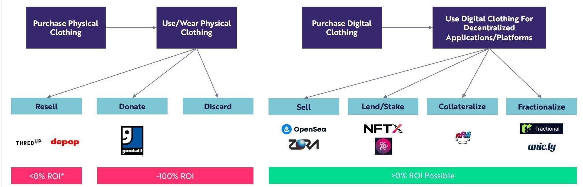 我們相信,如果在線參與人數能夠真正擁有數字資產,那么Web3虛擬生態系統將會茁壯成長。在傳統的Web2.0業務模型中,用戶退出時通常會面臨產品或服務的各種限制。例如,他們不能將游戲內資產從一款游戲移植到另一款游戲,此外,他們面臨著從其內容中獲利的社交媒體平臺審查的風險。相比之下,公共的和去中心化的區塊鏈允許用戶在一個合法的二級市場上存儲和交易資產。