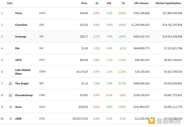 DeFi項目鎖定資產前十排名及鎖倉量,數據來源:Debank