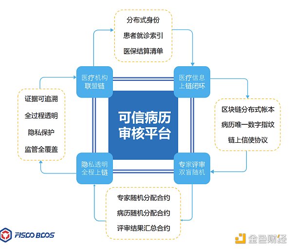 基于FISCO BCOS區塊鏈底層構建醫療數據流轉和審核的聯盟鏈,實現病歷指紋上鏈、專家雙盲審核、證據可研可溯、監管全流程覆蓋,數據鏈上鏈下結合,為醫保基金監管提供可信平臺,監管機構提供聯盟鏈準入認證和分布式身份生成,醫療機構節點對等參與,共同打造醫療信息大閉環,智能合約全流程,專家分配、病歷分配、結果匯總,由智能合約自動執行,異常數據預警報告,審核報告公開公證,平臺已接入13家醫院的醫保結算數據和HIS數據,為醫保局提供強有力的監管工具,提升醫保基金監管能力。