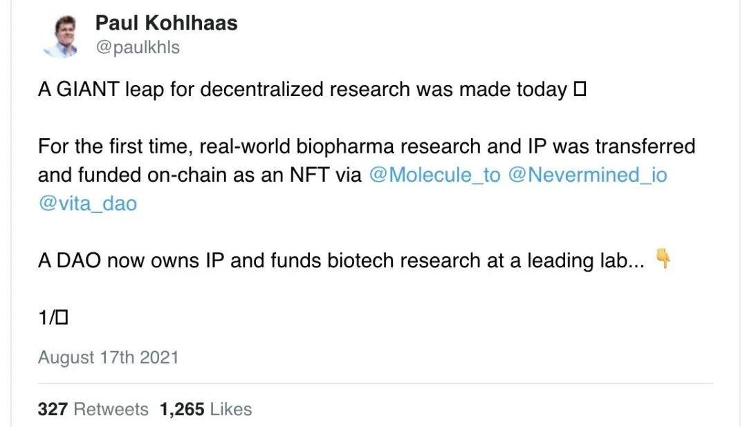 Twitter或Facebook新聞供應建立在充滿數字噪音的封閉源全球化社交圖譜上。Web3將允許各種部落從這個全球化的社交圖譜中分離出來,通過私人聊天室和放大信號的開源金融網絡進行連接。新聞供應是一個24/7的全球迷你才藝秀,而加密網絡是一個24/7的世代財富追求。關注者和喜歡的數量與你的代幣余額無關。首先,我們將媒體游戲化,現在我們將金融游戲化。在線部落圍繞兩種貨幣出現:具有橫向相關性的上下文無關貨幣,例如ETH、OHM或Solana,這代表了財務圖。上下文相關的貨幣又名NFT,這意味著它們可能是代表特定在線部落文化所有權的身份象征。但也代表了一些不那么抽象的東西,比如IP。NFT也基于財務圖,但帶有社交元素。它們似乎也是Web2和Web3之間的連接部分,因為它們可能代表一個原始社會層,并附加了訪問經濟。很快,用戶將能夠對NFT發表評論并向所有者發送消息。對于很多人來說,NFT將成為他們偽匿名的象征,并將他們與他人聯系起來。圍繞這些獨特的數字資產正在形成一種經濟,這些資產不會因為稀缺而有價值,但主要是因為它們代表了一種身份。如果NFT成為IP會怎樣?想象一下,在一個沒有許可的研究世界里,在線集體聚在一起解決一個特定的問題。針對特定醫學主題的reddit論壇是無害的。如果你讓這些集體有能力擁有并資助這項研究,我們就可以拆分生物技術和醫藥分銷。