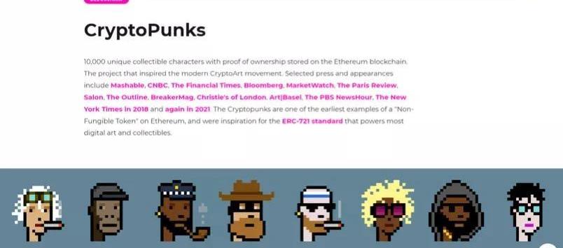 斯蒂芬·庫里的主頁來源:推特這是庫里繼NBA傳奇巨星科比去世后第一次換頭像,此前他一直設置的是自己跟科比的合影,但至今他的推特背景圖還是保留著他跟科比的另一張合影。更換頭像這一舉動引起了人們廣泛的關注。除了庫里更換頭像,Visa在8月23日以15萬美元的價格購買了CryptoPunkNFT頭像也掀起一陣風潮。到底是什么魅力讓人們愿意以高昂的價格來購買NFT頭像,他們到底又有何來頭。NFT頭像的鼻祖,CryptoPunks