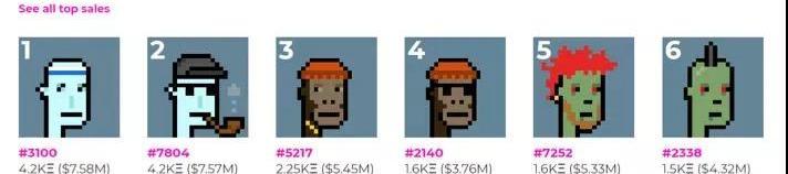 Visa購買的CryptoPunk7610號各類頭像的數量越稀少、種類越稀缺,售價也越高。在CryptoPunks系列像素頭像中,外星人系列數量最少、最稀缺,其中外星人系列中的3100號和7804號在2021年3月11日均以4200以太幣價格成交,按照當時的以太幣價格計算,成交價格約在7566萬美元。至今為止,這兩個頭像依舊是最高成交紀錄的保持者。