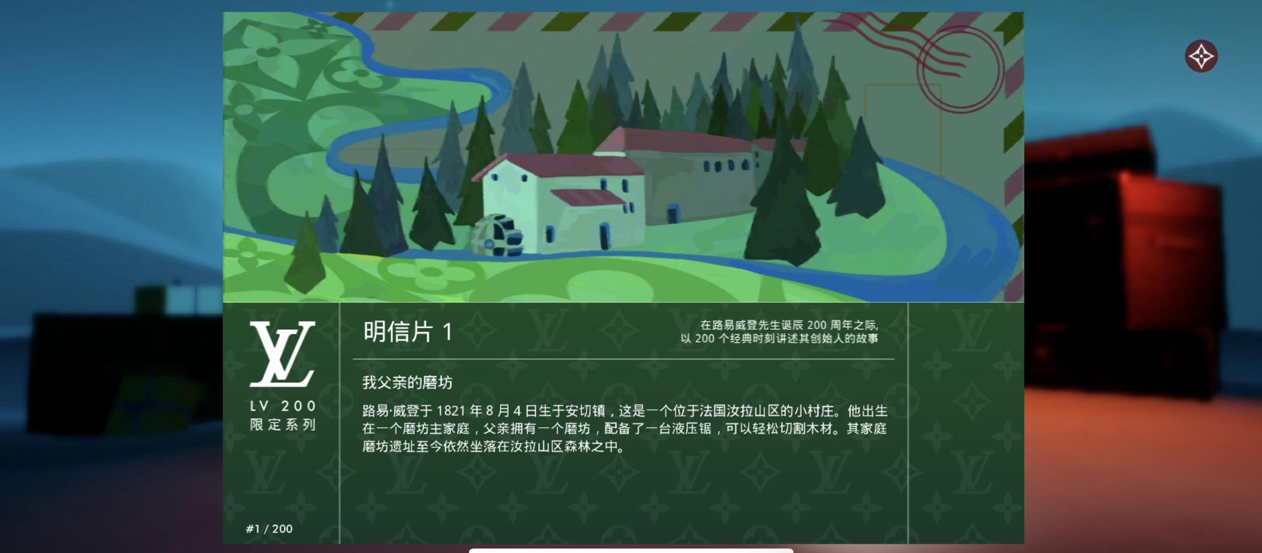 落地后嘗試點擊一下Vivienne的背包。會看到明信片集以及你的當前收集進度。每一張明信片都講述了一段關于LouisVuitton的小故事。