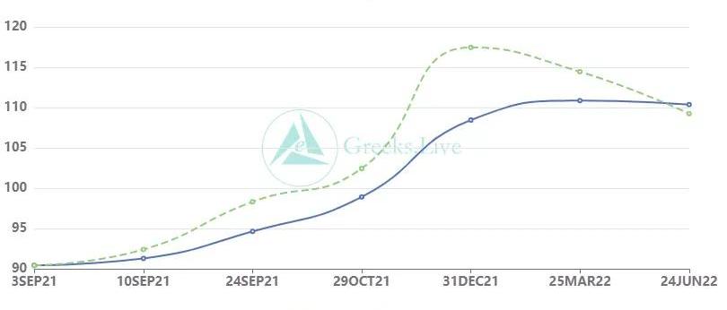 從OptionFlows數據看,大宗看漲的成交3057張,占比20%屬于近期較高的。主要成交仍然集中在超短期和次月,一個月內到期的期權成交占比八成以上,目前交易的主力開始向次月的季度期限,季度看漲成交3.5K。