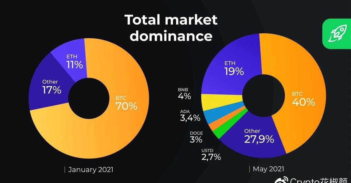 并沒有一個有效的催化劑可以解釋過去一周的走勢,拋售起源于比特幣統治率的新低,MEME類項目最后的狂歡以及馬斯克的推文,即由于環境原因,特斯拉不再接受比特幣作為一種支付方式。同時宏觀因素的擔憂也是原因之一,主要來自于高于預期的4.2%的通脹率,這些引發了人們對加密貨幣的擔憂。更多利空的消息比如幣安面臨監管審查的消息流和中國嚴厲打擊比特幣挖礦產業等等,羅馬不是一天建成的,但是多次的炮火足以泯滅。