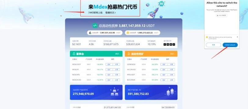 1:進入兌換頁面購買MDX、HT、WBNB2:兌換完成后進入資金池MDX/HT、MDX/WBNB添加流動性3:進入https://imo.mdex.com/#/頁面參與質押注:HECO、BSC同步上線IMO,上線時間2021年5月25日20:00——22:00;以下為測試環境教程,與正式版操作一致,參與代幣請以正式版為準。1.進入“IMO.MDEX.COM”IMO板塊,鏈接小狐貍錢包,點擊IMO界面導航處進入IMO功能頁面,準備好需要兌換的代幣。