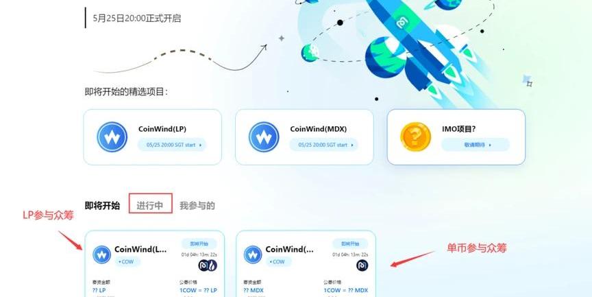 2.進入IMO功能頁面,可以選擇你想參與的IMO項目,如圖。“進行中”為正在IMO的項目,點擊進入參與。