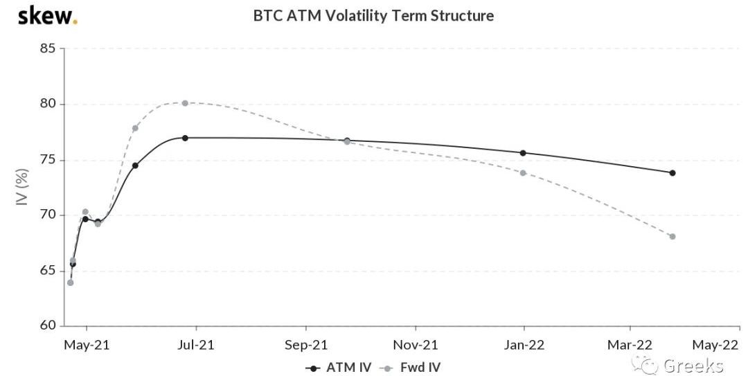 播報數據由Greeks.live和Skew.com提供。昨天的播報中評價行情引用了《史記》中的一句話:“強弩之末,矢不能穿魯縞”。大行情需要大新聞或者大資金的推動,近期消息面和資金面新增力量不足,沒有外力加持,比特幣疲態盡顯。期權成交量12億美元,期權持倉量為120億美元。10d66%30d60%90d85%1Y68%各標準化期限隱含波動率:今日:1m73%,3m77%,6m76%,DVol83%4/21:1m73%,3m77%,6m76%,DVol83%比特幣體量占據數字貨幣主導地位,需要大量資金維持價格。當高風險低收益的概念幣都有人追捧時,說明市場比較弱勢,只能暫時積蓄力量,整體IV幾乎沒有波動。