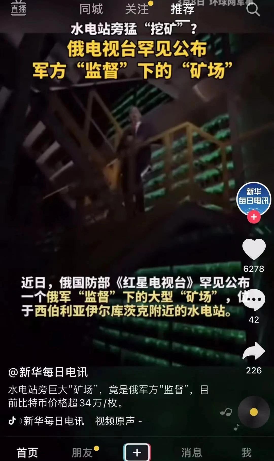 XRP/HKD+1.15%太太太太不可思議了,在全球無數的比特幣礦工中,你恐怕沒想到會有這么一個超級玩家——俄羅斯軍隊!新華每日電訊消息,據俄國防部《紅星電視臺》報道,在西伯利亞伊爾庫茨克附近的一個水電站,隱藏著巨大的加密貨幣礦場,俄羅斯軍隊居然在挖比特幣。