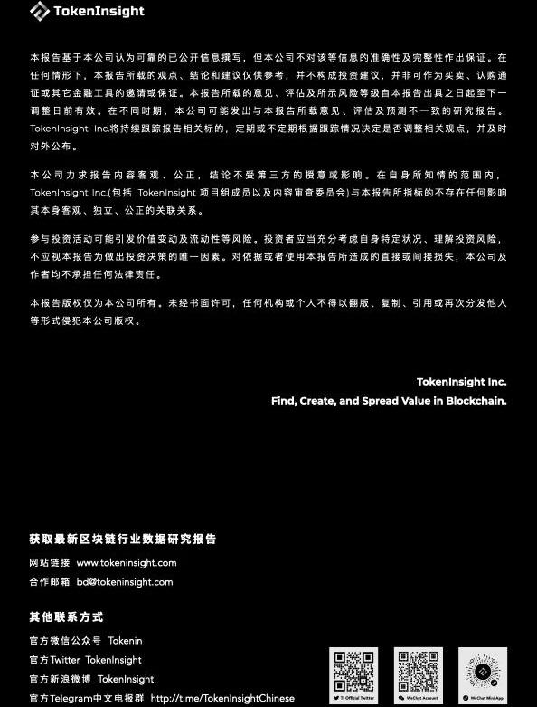 風險提示防范各類金融平臺打著“區塊鏈”和“虛擬貨幣”等旗號的非法集資活動,TokenInsight將嚴格遵守國家法律和監管規定,堅決抵制利用區塊鏈進行非法集資、網絡傳銷、1C0及各種變種、傳播不良信息等各類違法行為。如發現內容含敏感信息,請后臺聯系我們,我們會及時處理。
