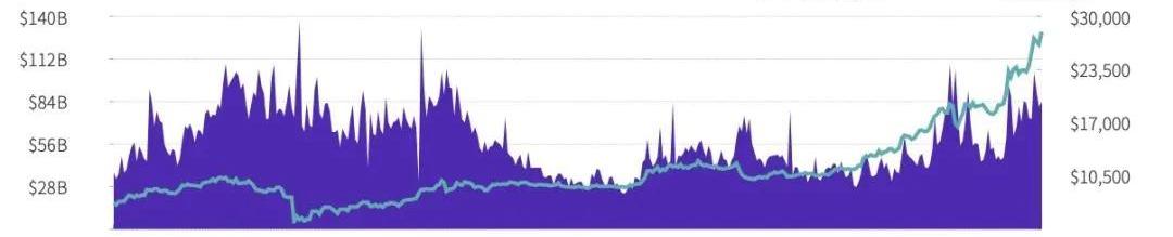 2020全年現貨成交量與BTC價格,來源:TokenInsight現貨成交量方面,一季度全市場交易最為活躍,在3月12日大跌的黑天鵝事件影響下,季度交易量達$6,647B;三季度由于比特幣價格出現一段時間的橫盤,市場交易活躍度較為低迷,季度交易量僅達$3,398B。同時,三季度DeFi的崛起一定程度上沖擊了中心化交易所比特幣現貨成交的主導性地位。隨著四季度比特幣價格的強勢上漲,現貨交易活躍度回暖,四季度成交量為$4,998B,較三季度環比上漲25%,較2019年四季度同比上漲53%。