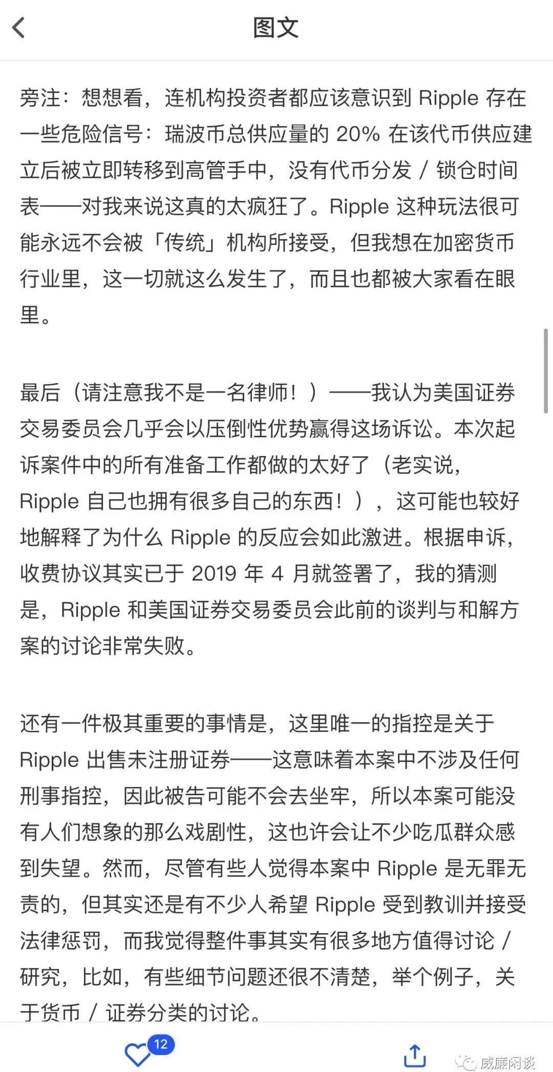 但是市場恐慌的源泉其實是XRP帶來的“美國版94”的恐懼。瑞波這次遇到的,其實和前面幾次項目遇到的都是差不多概念,具體點可以看這個報道節選: