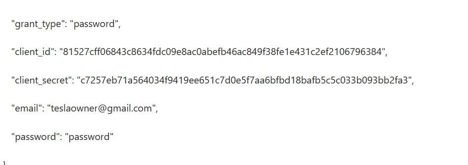 一旦你有了一個有效的認證令牌,你就需要通過在請求頭中傳遞這個認證令牌到所需的API端點來找出你的(https://www.teslaapi.io/vehicles/list):