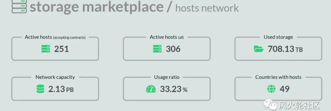 上圖是截取的一段他家瀏覽器數據,在使用的存儲空間是708TB,使用率僅為33.23%,活躍的主機306個,來自49個國家,也可見他家對應的市場有多小眾。3.Arweave