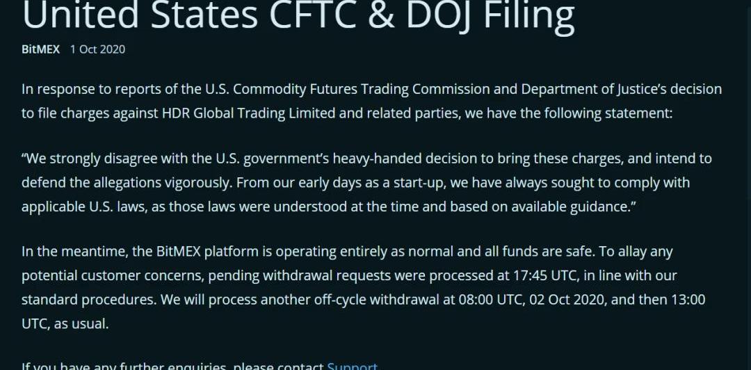 XRP/HKD+1.55%編者按:本文來自區塊律動BlockBeats,作者:0x290x66,Odaily星球日報經授權轉載。北京時間10月2日凌晨,剛剛進入2020年最后一個季度第一天的美國傳來兩則重磅消息:一是,美國監管層對全球最大加密貨幣交易平臺之一BitMEX的高管和實體公司提起訴訟;二是,BitMEXCTO已經被逮捕。當地時間10月1日,美國司法部和美國商品期貨交易委員會分別對BitMEX的創始人及三位高管發起了刑事和民事指控,稱其串謀違反美國《銀行保密法》、運營未注冊的交易平臺、涉及違反KYC和反洗錢相關的監管法規。