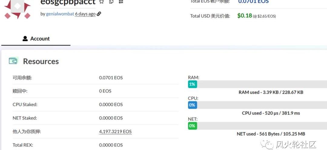 在網頁中詳細的列出了節點信息,包括郵箱、社交賬戶和地理位置等。目前該節點賬號還是空的,只有從rex租賃進來的幾千個eos資源,還未正式開始投票: