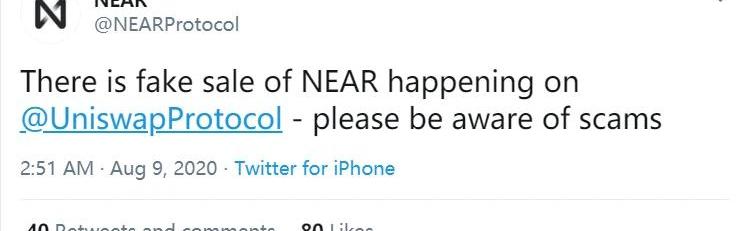 NearProtocol官方推特聲明2.技術風險和所有的智能合約一樣,Uniswap也面臨著技術的風險,雖然Uniswap的智能合約相對比較簡單,且通過了輕量級的智能合約測試。