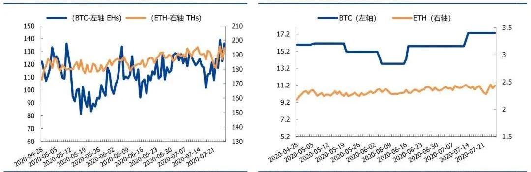 上周BTC日均算力達到124EH/s,環比上升7.4%;ETH全網日均算力達到188.3TH/s,環比下降1.5%。上周BTC全網挖礦難度為17.35T,環比上升0.6%;下次難度調整日在7月28日,預計難度值為16.98T(-2.11%);上周ETH全網平均挖礦難度為2.37T,環比下降1.6%。