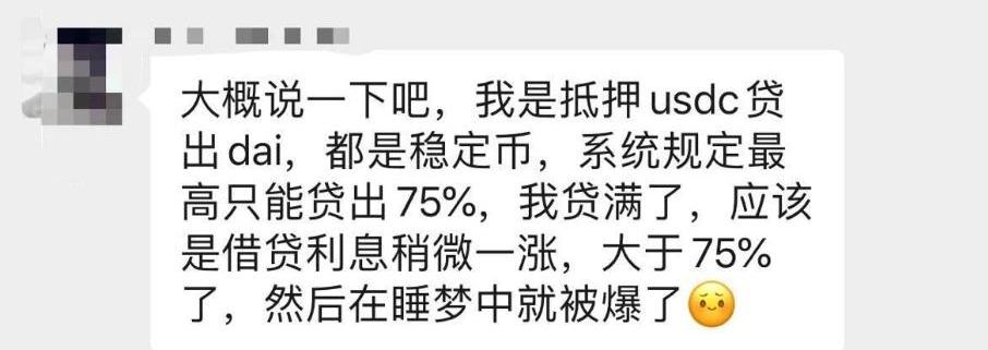 不管是存錢,還是借錢多能獲利,利率還非常高。而且更有意思的是,從目前統計數據看,借錢的人獲利比存錢的人更高。那么錢從哪里來呢?來自COMP的二級市場交易。這么高的利率,自然少不了套利者,比如反復抵押借貸來挖礦。1、個人操作太猛,抵押借貸也會爆倉部分人覺得抵押借貸不會爆倉,于是按最大量進行抵押借貸來挖COMP,事實太殘酷,穩定幣一丟丟波動,導致抵押借貸爆倉了。