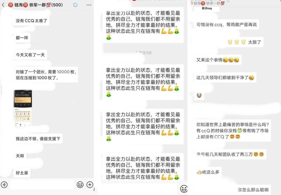 △左為秘樂達人收益,右為鏈淘達人收益,誘惑加碼到這一步,一些想“搏一搏,單車變摩托”的人,基本已經被眼前的高收益沖昏了頭腦,開始積極推廣、發展下家。畢竟邀請成功一批用戶后,邀請者就能直接獲得收益分成,且這些用戶后續在這平臺的一切操作,作為上家也能享受收益,真正實現睡后收入,躺賺穩賺。一旦下家成功注冊,他們便會被邀請進微信群,群里的幾位管理員除了時不時曬曬自己的高額收益,鼓勵并鞭策下家們努力發展新玩家外,還會定期或不定期的安排課程,邀請專門的講師給群友授課。
