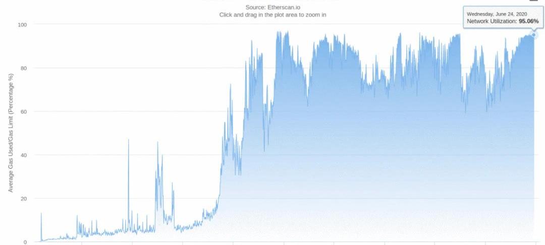 Etherscan的網絡利用率圖表清楚地表明,網絡利用率正在增長,超過95%。隨著網絡利用率的提高,交易的競爭也將加劇。因此,看到天然氣價格上漲,最終交易費用增長也就不足為奇了。