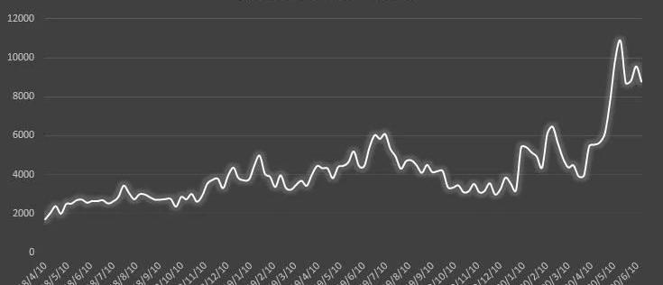 4月30日,比特幣一舉突破壓力,到達9000美元后,已經在9000美元-10000美元之間橫盤接近50天.