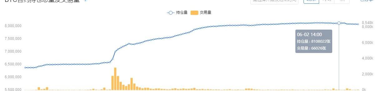 根據OKEx合約大數據顯示,今日小時級別合約多空持倉人數比漲至近3個月以來新高1.8,持倉量持續增加,達到810萬張以上。