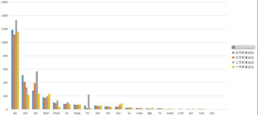 比特幣在四月的新增地址數量為1186.63萬,較三月增長6.14%。以太坊的新增地址則為511.45萬,較三月增長23.18%。結合上文提到以太坊連續四個月的增長勢頭,以太坊似乎被低估了。