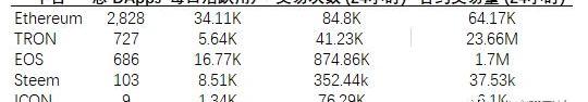 \t3.Dapp去中心化\t從昨日至今日24小時內的交易次數為156萬次;\t交易量為1849萬美元;\t累積活躍用戶\t90040人。從4月20日至今日,共增加了47個Dapp。今日以太坊的活躍用戶依然是最多;柚子的交易次數是最多,波場整體排名第三。\t