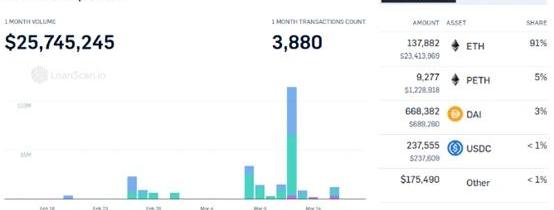 DeFiPulse排名另一個正面的結果是,協議獲得迄今為止最高的手續費,僅24小時內就達到了114ETH,相當于14,500美元。一部分原因是閃電貸的出現,另一部分原因是用戶為避免清算,償還了他們的頭寸。即便用戶緊急償還了貸款,但協議中的貸款總額仍在不斷上升。
