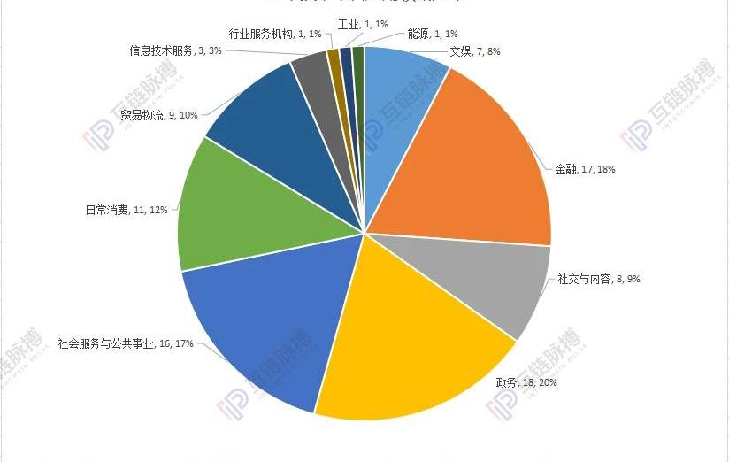 以各平臺落地的應用為依據,目前的技術平臺發展基本可以分為三條路徑:一是以迅雷為代表的,ALLIN區塊鏈的科技公司,可為多個行業和場景提供區塊鏈技術服務,推動各產業“鏈改”;二是BAT所代表的科技巨頭,目前主攻公共事務、政務類應用,區塊鏈業務對其而言或許尚未作為營收項目,而是維護政府關系和社會形象的工具。三是以平安壹賬鏈為代表的,從原有產業中孵化出的區塊鏈平臺,這類平臺主攻方向明朗,基本以原有業務為依托。賦能多個產業,最廣泛布局——迅雷鏈12個平臺中,落地應用涉及領域最多的是迅雷鏈,12個落地項目觸達7大領域。按照互鏈脈搏應用二級分類體系劃分,包括日常消費、信息技術服務、社會服務與公共事業、金融、社交與內容、文娛。此外,螞蟻區塊鏈的落地應用也涉及7大領域,但綜合24個落地數量來看,其在應用領域選擇上存在較多重復。除覆蓋較多領域外,迅雷鏈落地應用在細分場景上也幾乎無一重復,包含食品消費、大數據、醫療、電子商務、交通出行、保險、出版版權、體育、游戲等多個場景。