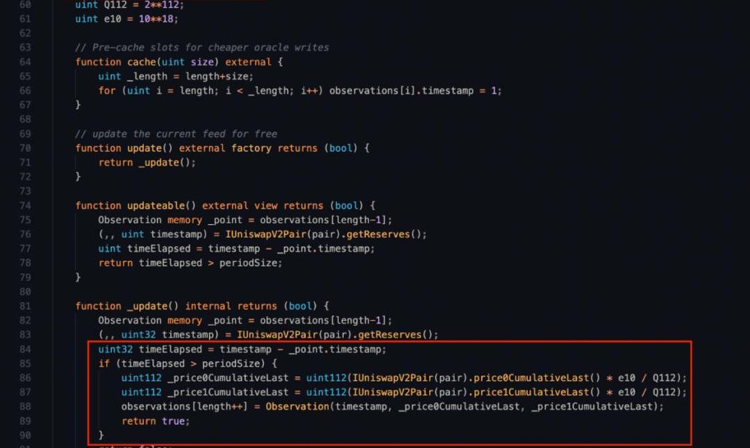 另一方面,TWAP可以防止閃電貸攻擊。理論上,攻擊者能夠通過"犧牲"一些錢來操縱價格,也就是說,用他自己的錢來改變價格。在這個特殊的價格預言機設計中,如果經過的時間沒有超過30分鐘,當前的價格不應該被用來計算出金金額。