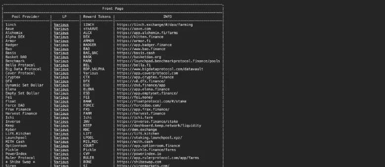 它是yieldfarming.info的一個分支,包含了不同主鏈和更多項目。用戶可以使用vFat工具來計算損益或通過不斷更新的公示板發現新的farmingpool。