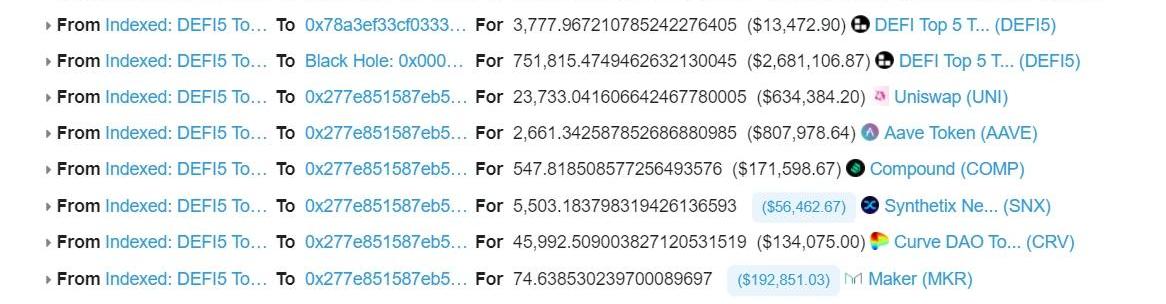 5.燃燒DEFI5LP代幣獲得AAVE/COMP/CRV/MKR/SNX/SUSHI代幣