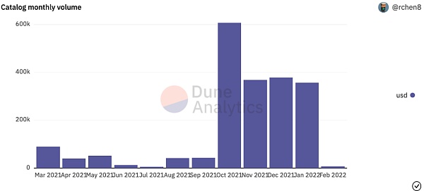 從上個月的交易量來看,Catalog 和 Sound 的一級和二級銷售額加起來不到 100 萬美元,僅占 OpenSea 的 NFT 交易量的 0.015%。