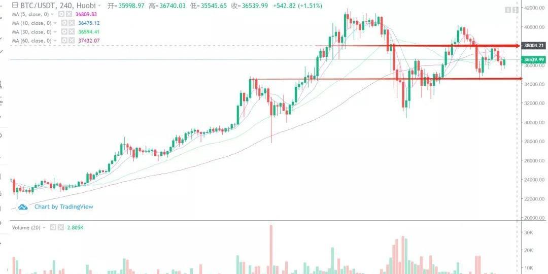 短線上,38000是一個短線的技術強弱參考點,如果突破38000,那么短線會繼續走強,再度嘗試40000以上的空間,如果無法突破38000以上,重新回測34500的位置無法穩住。周線上面的確定信號就更足,那么風險是在加強的。