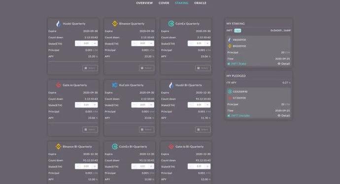 如果客戶想獲取穩定收益,可以參與INS3的staking來參與承保。與NXM強制質押90天不一樣,INS3的staking資本是一個NFT,可以在NFT交易平臺上自由轉讓。