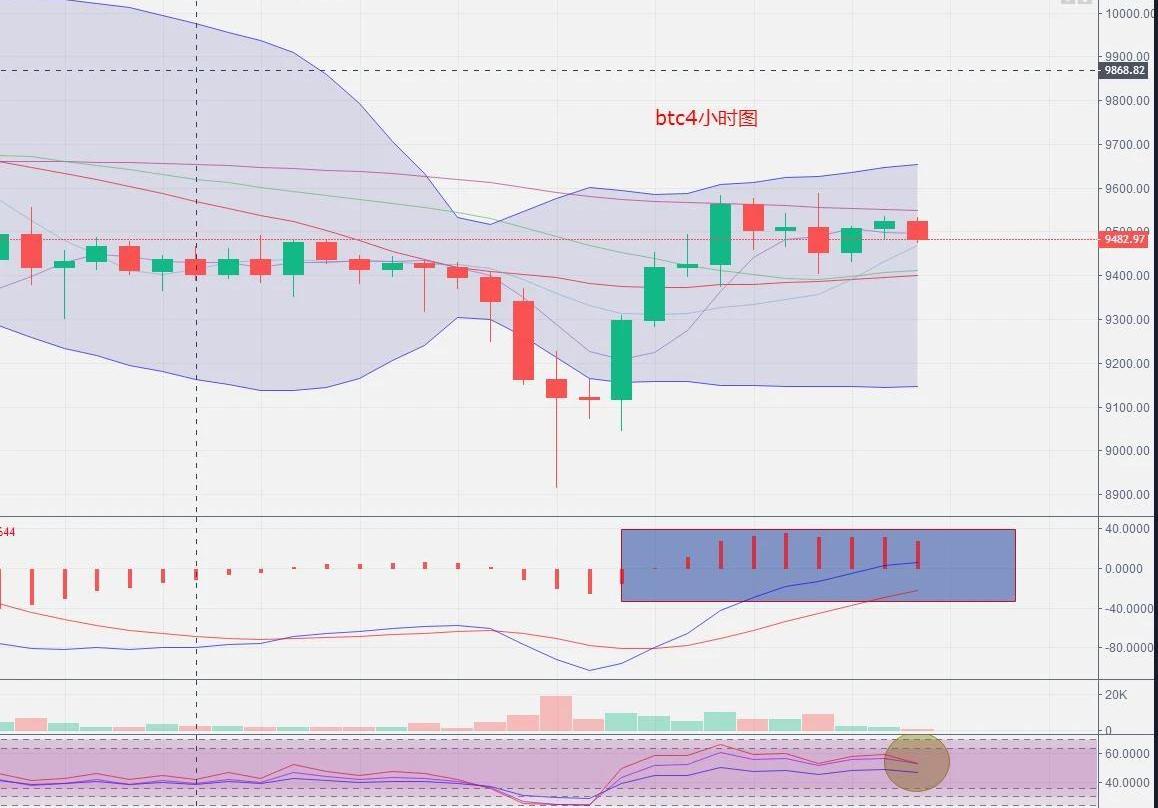 比特幣深V反彈后,再陷震蕩整理,9400-9600美金是6月份從1萬美金處跌落的中樞區間,日內如果能放量突破9600美金,則代表多頭再次占據主導,大盤回到1萬美金區域指日可待。而在中樞區間整理,面臨著一定的不確定性,處于多空頭角力的狀態,幣價可上可下,方向不明朗。