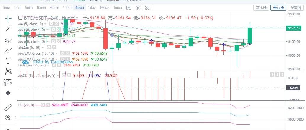 昨日行情雖然在凌晨時有向上拉升的趨勢,創出了近幾日的新高點位9191,但是并沒有維持多久后就出現了回調,直到下午5點左右才從回調中走出,并保持在9050一線震蕩;而在傍晚5點左右,空頭情緒再次轉濃,行情跌破9000,最低下落至8909位置后反彈回9000一線。截止目前價格運行在9100附近