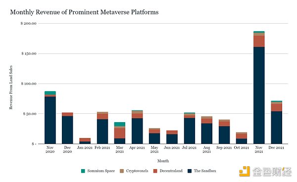 土地作為元宇宙中的資產相對來說是新生的。與過去幾年購買NFT的220億美元相比,它僅完成了約19億美元的交易量。就規模而言,單個NFT (Bored Apes) 的交易量(22億美元)超過了所有元宇宙平臺上與土地相關的交易。與代幣資產所擁有的數萬億市值相比,整個元宇宙中所有可用土地的總市值僅為36億美元左右。截至2022年1月,約有57,000個錢包在其錢包中持有與土地相關的資產。與估計有400萬個錢包參與DeFi相比,你可能會感覺到這個主題有多早。