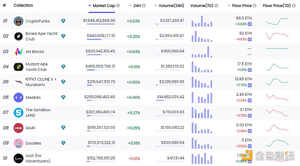 NFT總市值、市值排名前十項目 數據來源:Coinmarketcap