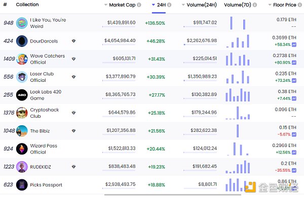 24小時內銷售漲幅前十的NFT 數據來源:NFTGO