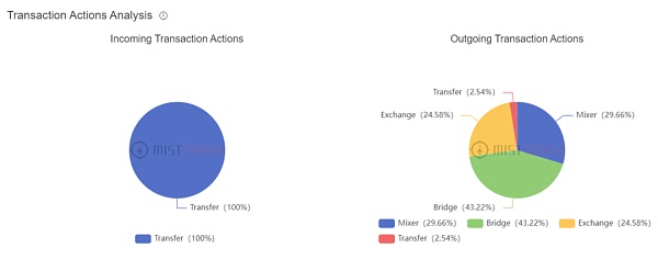 從部分展示結果來看,可以看到交易行為里黑客使用較多的除了 Bridge 就是混合器 Mixer,這些對我們分析黑客畫像十分重要。