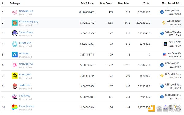 過去24小時去中心化交易所的交易量 數據來源:coingecko