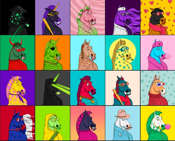 國外一個團隊與藝術家Maya Delia合作,創造了一個NFT小馬系列。據介紹這個系列的作品每周都會在CryptoHans上更新,目標是7777個形象,最終會在國外的NFT交易平臺OpenSea上交易。這些NFT作品每一個都由設計師、藝術家Maya Delia獨立創作、手繪完成。