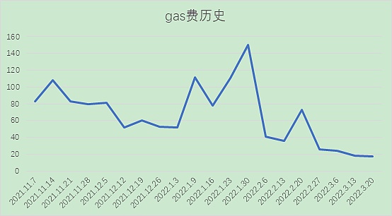 當前鏈上轉賬費用約為,交易費用約為9.04,Opensea的交易費用約為$9.91,基本與上周同期持平,整體點位繼續保持最低點。