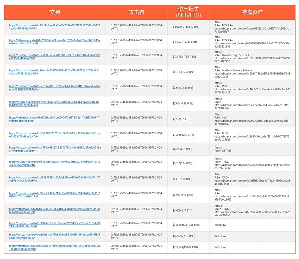 攻擊者攻擊了13個FEGexPRO合約,以下為概覽: