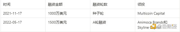 融資情況:2021 年 5 月種子輪融資,2022年1月由 Multicoin Capital 和 Dragonfly Capital 領投、多個機構參投的 1000 萬美元融資。隨后 2 月在 CoinList 平臺公募獲得 1500 萬美元。